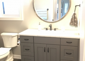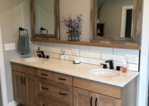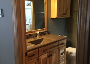 Beyer Cabinets can personalize your bathroom with built-in storage cabinets, customized closets, tub surrounds, toilet toppers, framed mirrors, double-sink bowls and more. We work with many wood types, hardware, colors, sizes, and shapes. All our bathrooms include a lifetime warranty on the hardware…. Get the look you want while maximizing space with your new bathroom from Beyer Cabinets.