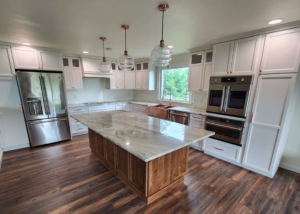 Beyer Cabinets makes each kitchen special and customized to you. At Beyer Cabinets, we work with many wood types, hardware, colors, sizes, and shapes. In addition to cabinetry, we can help you create the perfect kitchen with oven hoods, islands, pantries, sinks, and countertops. All our kitchens include a lifetime warranty on the hardware…. We look forward to helping you craft your ideal kitchen.